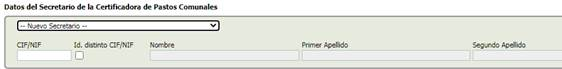 En el impreso de Datos Generales se mostrarán los “Datos Identificativos de la Declaración” y se solicitarán los “Datos Personales del Declarante”, la “Dirección de Notificación del Declarante” los “Datos del Representante Autorizado” y, específico de esta declaración, los “Datos del Secretario de la Certificadora de Pastos Comunales”: