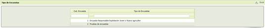 En la pantalla “Tipo de Encuestas”, mostrará los campos de código de encuesta y tipo de encuestas.