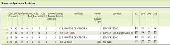 2. Aparecen campos por cada una de las líneas marcadas en Datos generales y se podrá consultar la selección de las líneas de las que es compatible el registro.