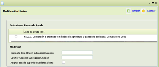 . Si se pulsa sobre este icono, se abre un formulario que permite seleccionar la/s Línea/s sobre la que se quiere hacer la modificación y completar los campos que se pueden modificar.