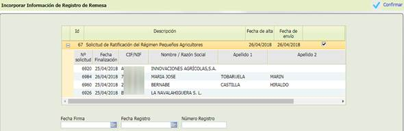 · [Fecha Registro]: fecha en la que se realiza el registro de las solicitudes de la remesa.
