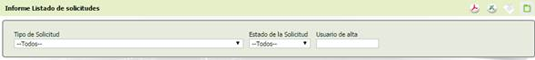 · Se pueden utilizar los siguientes filtros: [Tipo de Solicitud], [Estado de la Solicitud] y [Usuario de alta].
