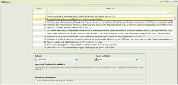 o [Tipo de validación]: Tipo de validación para ese registro. Pantalla, Error, Aviso o Incidencia