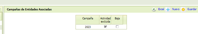· [Actividad excluida]: casilla de verificación para marcar si se realiza alguna actividad excluida de las incluidas en el R.D para esa campaña