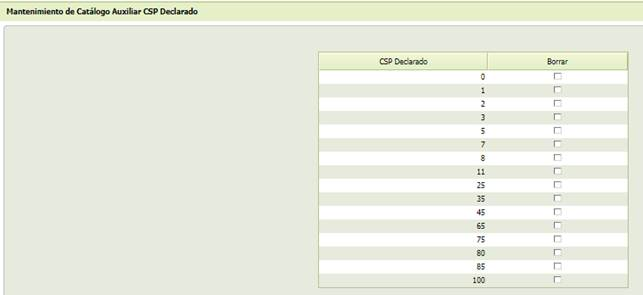 · [Borrar]: Casilla de verificación. Sirve para eliminar el valor del CSP del catálogo de esa campaña
