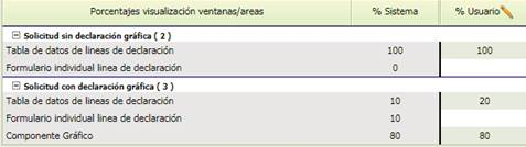 También se podrá elegir el porcentaje de visualización de las ventanas que forman parte de esta unidad, tanto con declaración gráfica como sin ella.
