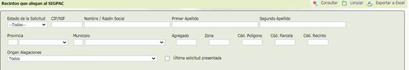 El formulario de filtrado presenta el siguiente aspecto: