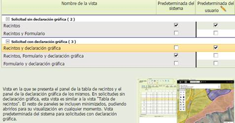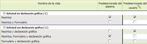 Se podrá elegir la forma de presentar la pantalla de Datos generales de recintos en Solicitud Única eligiendo la forma de mostrarse con y sin declaracion gráfica .