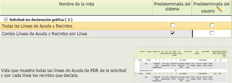 Se podrá elegir la forma de presentar la pantalla de Datos Específicos de recinto PDR. Con las Opciones de “Todas las líneas de Ayuda y Recintos” y “Combo Líneas de Ayuda y Recintos por línea” .
